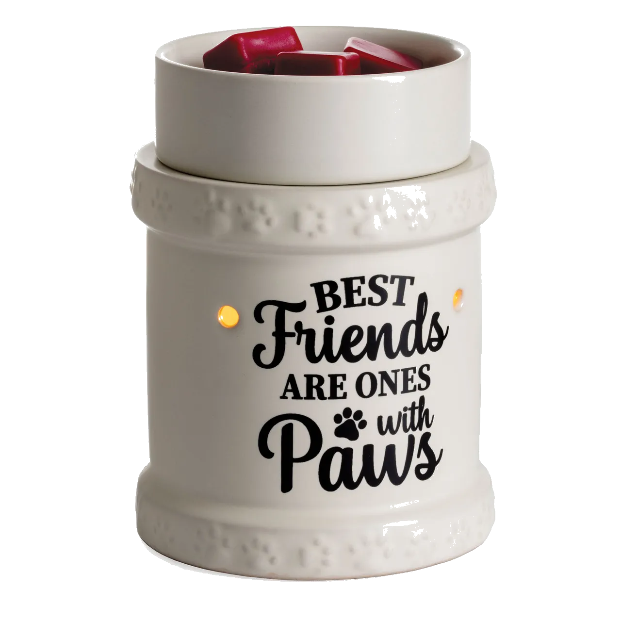 - DESIGN: Indulge yourself in the delightful ambiance of the Best Friends Illumination Fragrance Warmer. The black lettering “Best Friend are Ones with Paws” on a cream warmer and adorable paw print details, is sure to remind you of your furry friends and their love and loyalty.